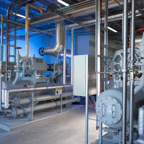 Critically charged central ammonia/glycol chiller plant